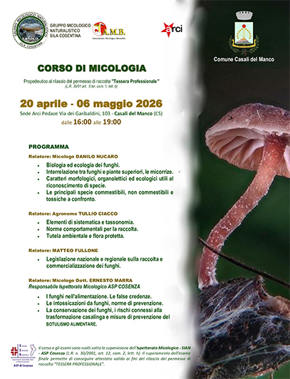 Corso di Micologia Propedeutico al rilascio del permesso di raccolta "Tressera Professionale" dalle 16:00 alle 19:00